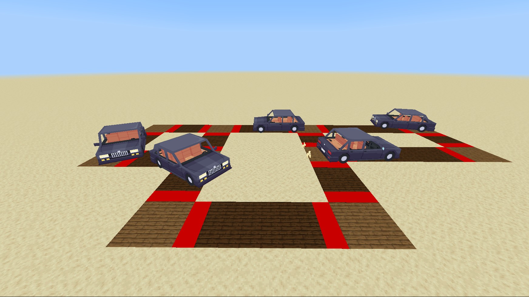 Cars that drive as NPCs in a city, this behavior for car type entities is made for a minigame focused on the minecraft marketplace.